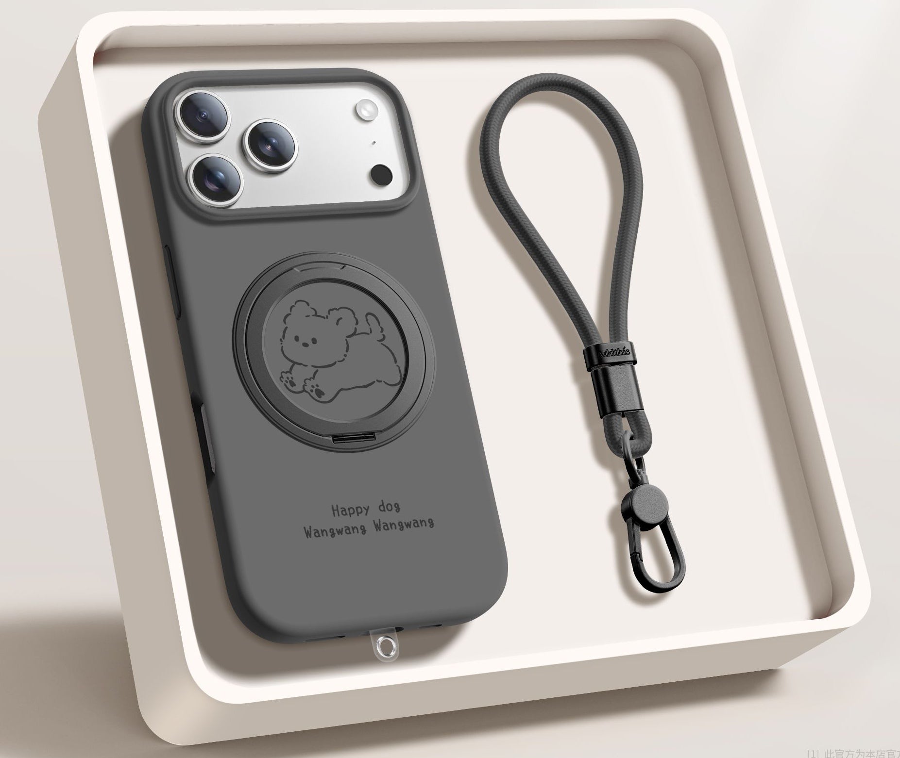 This phone case with a stand features 360-degree rotation,allowing adjustable positioning on a desk for convenient video viewing.It comes with a phone strap and an exquisite running rabbit pattern design.
