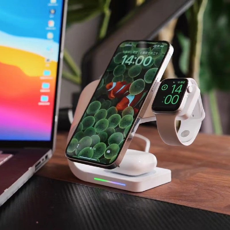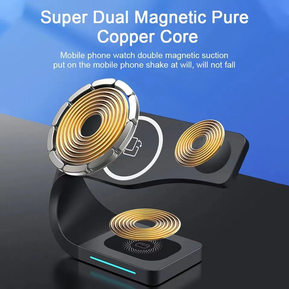 lntelligent 4 in 1Multi Function Magnetic Absorption Wireless Charger For iPhone / Apple Watch / Airpods. Magnetic Wireless Charger Phone Stand.