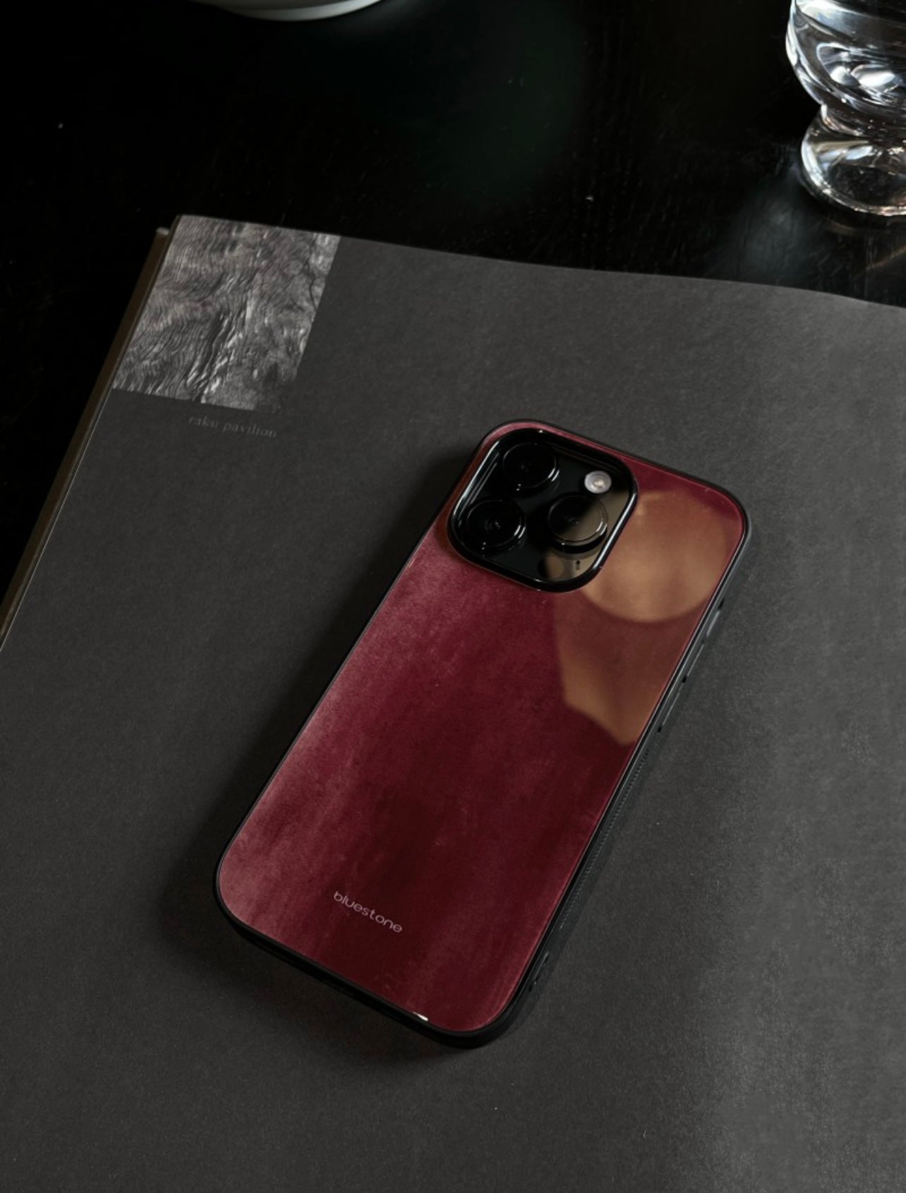 This iPhone case is designed to provide the look and feel of porcelain in a rigid, anti-scratch, non-slip material. It features a burgundy glaze covering made from reinforced glass for long-lasting protection.