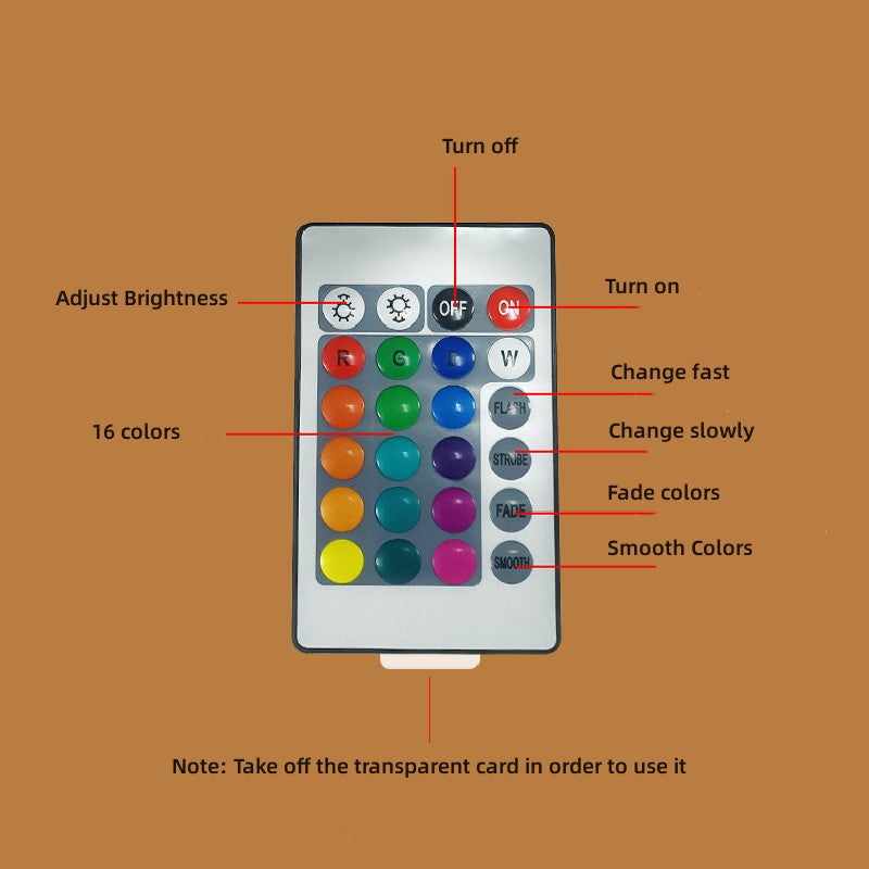Two options: warm color only (without remote), and 16 colors adjustable with a remote.
